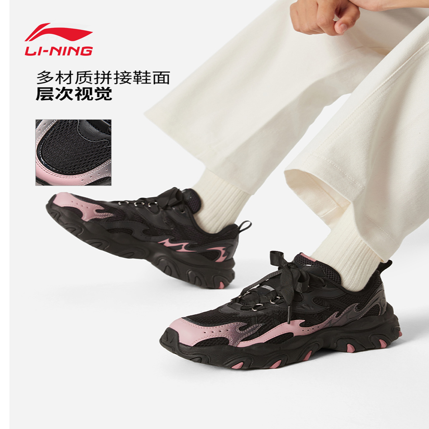 新款 女2025年秋季 3休閑鞋 百搭透氣老爹鞋 運動鞋 時尚 李寧貓爪LITE由