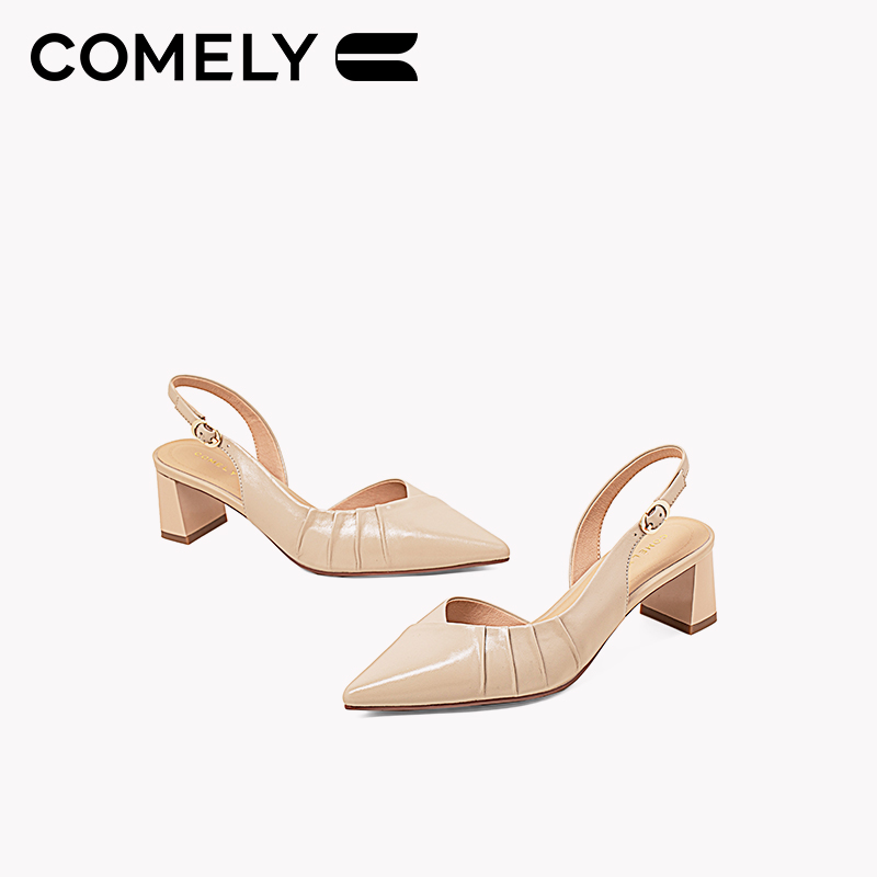單鞋 康莉粗跟包頭涼鞋 真皮時尚 尖頭羊皮高跟鞋 女2024年春季 新款由