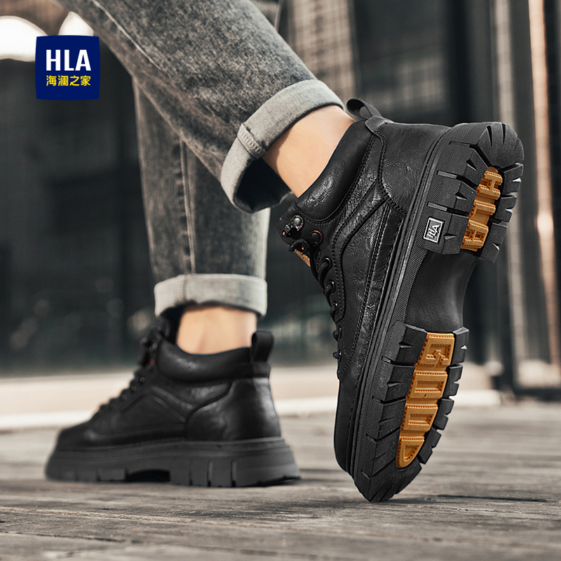 海瀾之家馬丁靴男款 秋季 休閑英倫高幫工裝 皮靴真皮靴子男 2025新款由