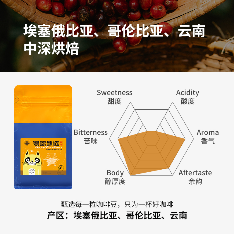 拼配咖啡豆新鮮烘焙可現磨粉黑咖啡500g 1KG 云南精品意式 時澄