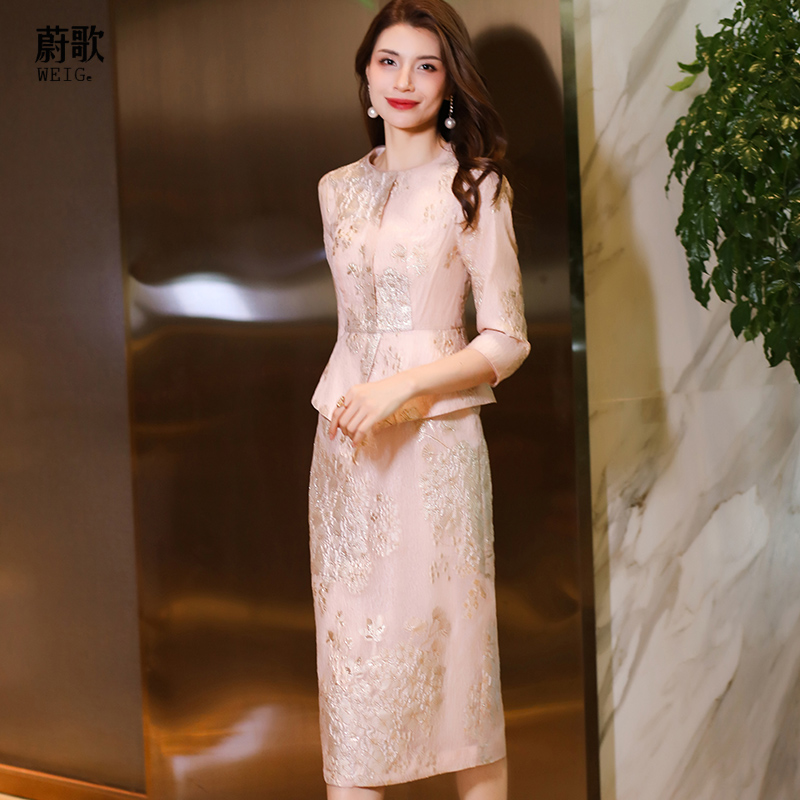JKJS 人絲提花新中式 連衣裙高級設計感國風修身 粉色裙子 云錦詔