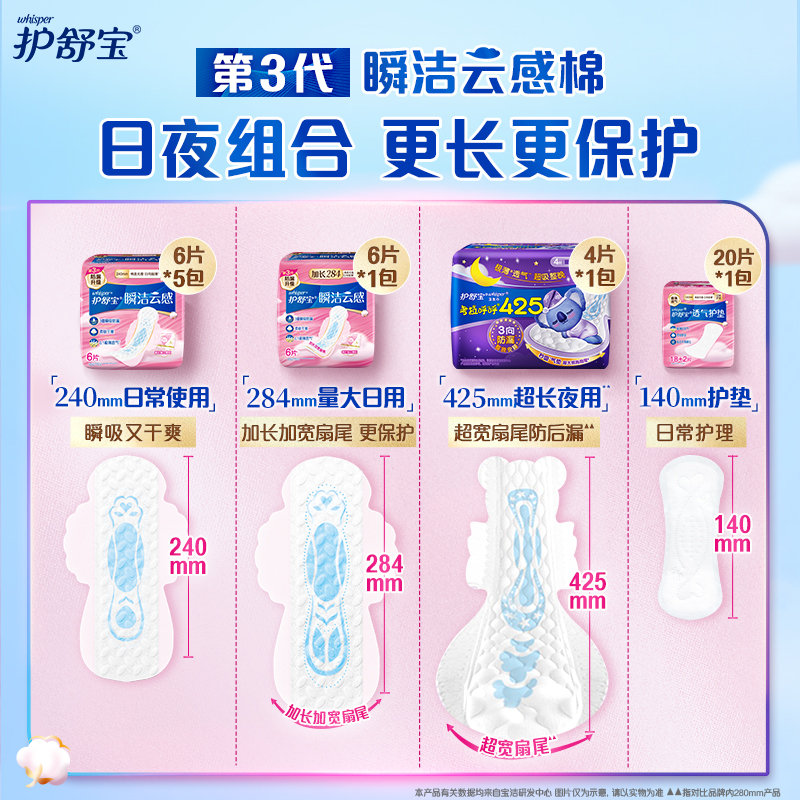 護舒寶瞬潔云感棉日夜裝 衛生巾全周期組合60片旗艦 優于新國標由