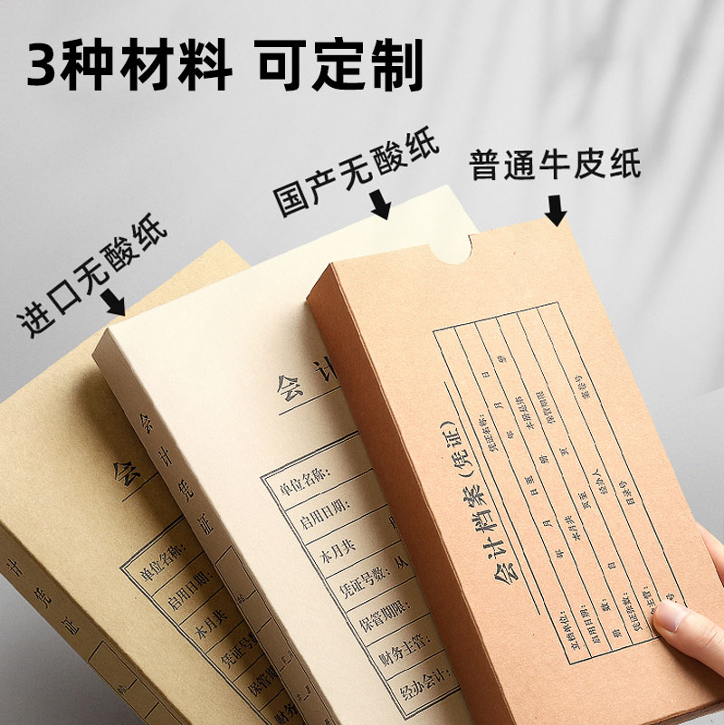 50個檔案盒牛皮紙文件資料收納盒定制印logo加厚紙質無酸紙準會計文書a4大容量復合進口辦公用品會計憑證訂制