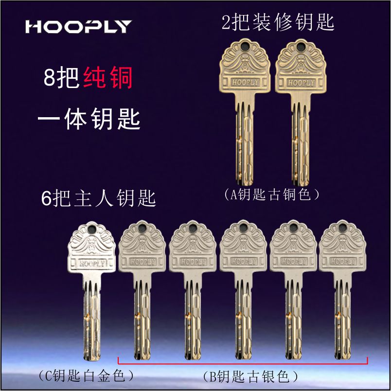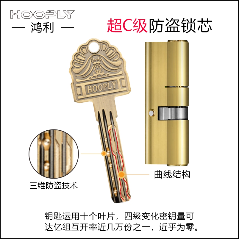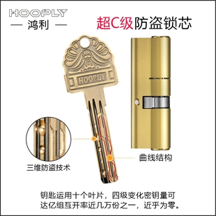 hooply鴻利超C級葉片全銅防盜門鎖芯鑰匙家用入戶大門木門室內門由