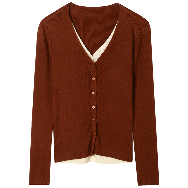 針織衫 條紋短袖 新款 毛衣外套 開衫 兩件套圓領修身 長袖 RARN2025秋裝