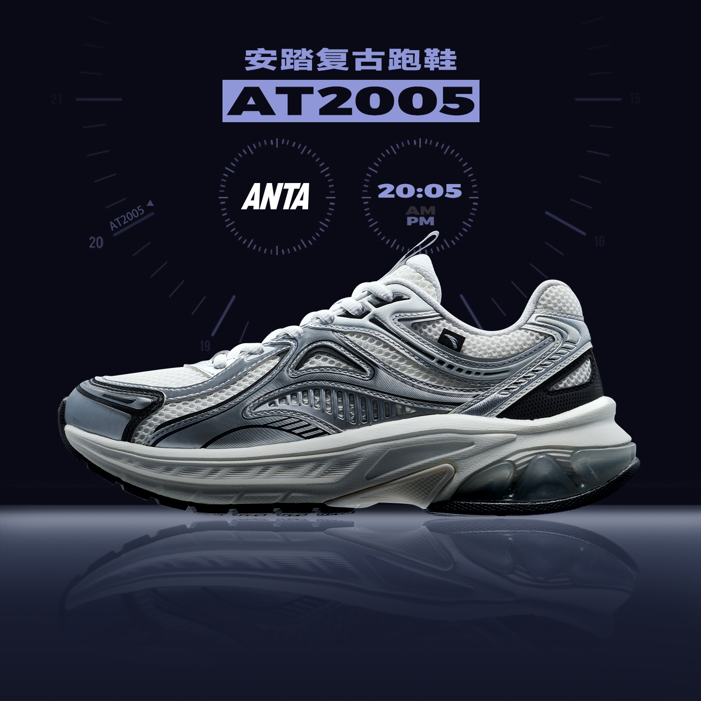 舒適軟底銀色運(yùn)動(dòng)鞋 安踏AT2005 新款 2025秋季 潮流復(fù)古跑步鞋 女鞋由