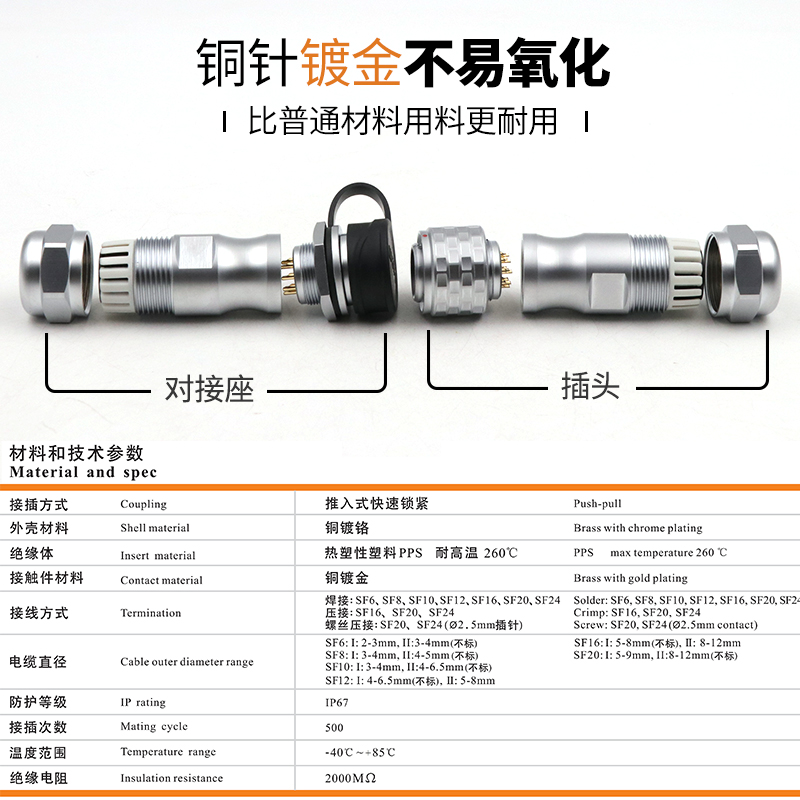 II型接頭公母對接式 234579芯10針 威浦防水航空插頭SF16大尾巴由