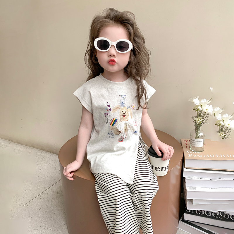 2025新款 套裝 短袖 闊腿褲 兩件套兒童時髦夏裝 女孩寶寶T恤 女童夏裝由
