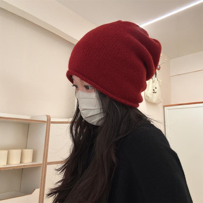 男女款 包頭冷帽 100%純羊毛帽子針織坐月子帽2024新款 堆堆帽秋冬季由