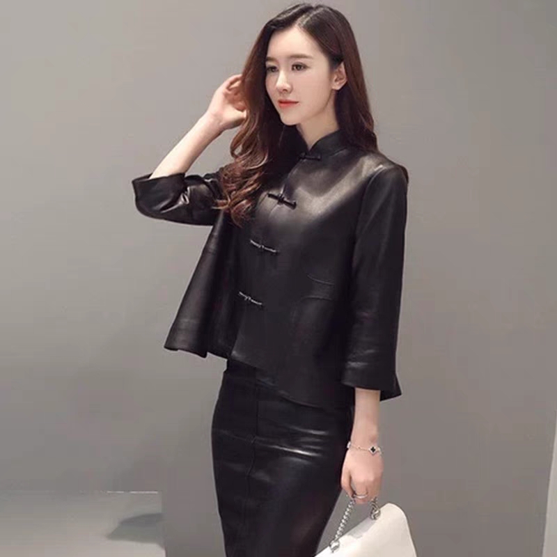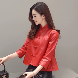 修閑時尚 2025新款 潮 復古修身 外套中國風唐裝 海寧春季 真皮皮衣短款由