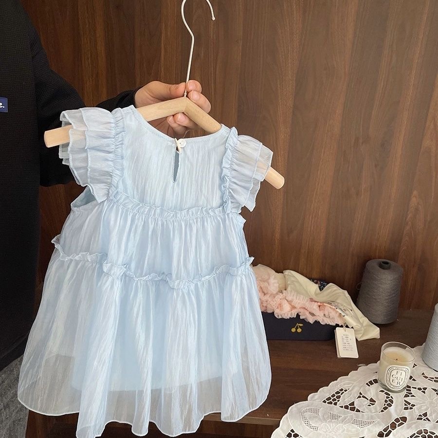 女寶寶洋氣紗綢無袖 新款 時髦薄款 公主風背心裙 連衣裙女童2024夏季由