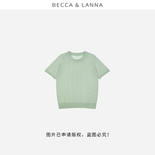 針織衫 硬貨哥 天絲麻絞花短袖 圓領外穿顯瘦上衣D0261 女士夏季由