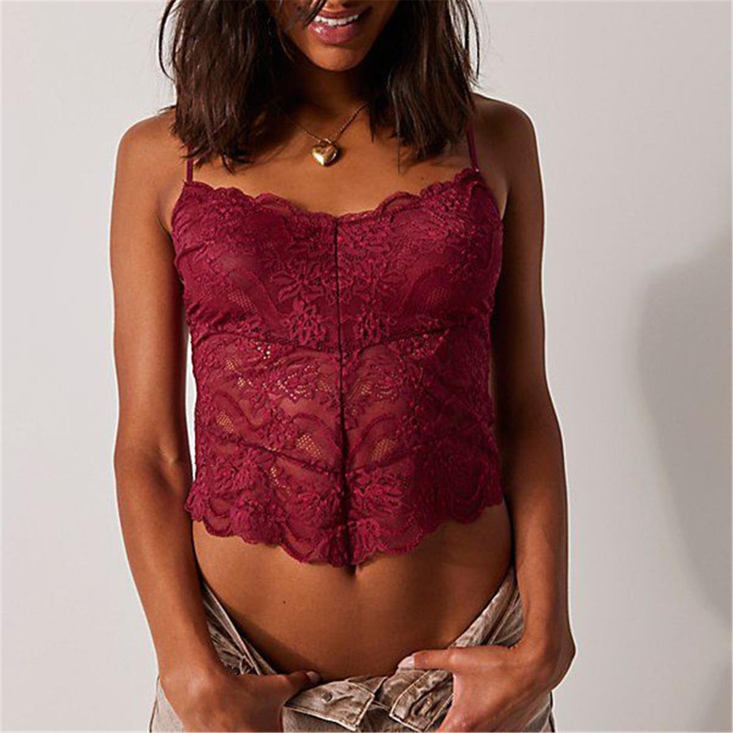 Berry v領蕾絲邊帶胸墊背心女顯瘦百搭吊帶上衣 喜你而歡大龐定制