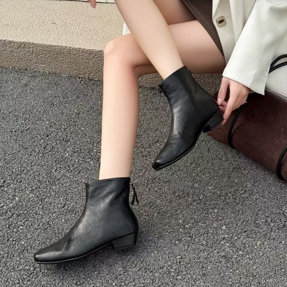 依佳依2025新款 方頭顯瘦女靴子 粗跟短靴女低跟英倫風馬丁靴女時尚由