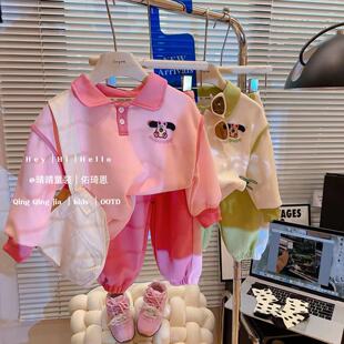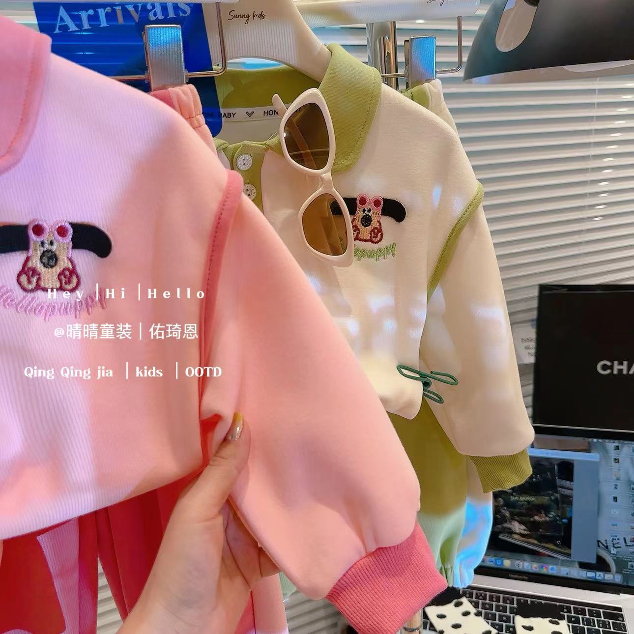 女童韓系時尚 新款 204 A34蒽 刺繡小動物衛衣兩件套2025秋季由