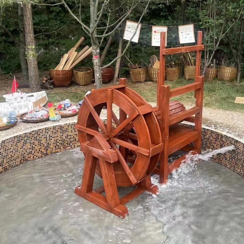 戶外幼兒園木制園林防腐木腳水車景觀手搖踩轉輪龍骨流水擺件定制