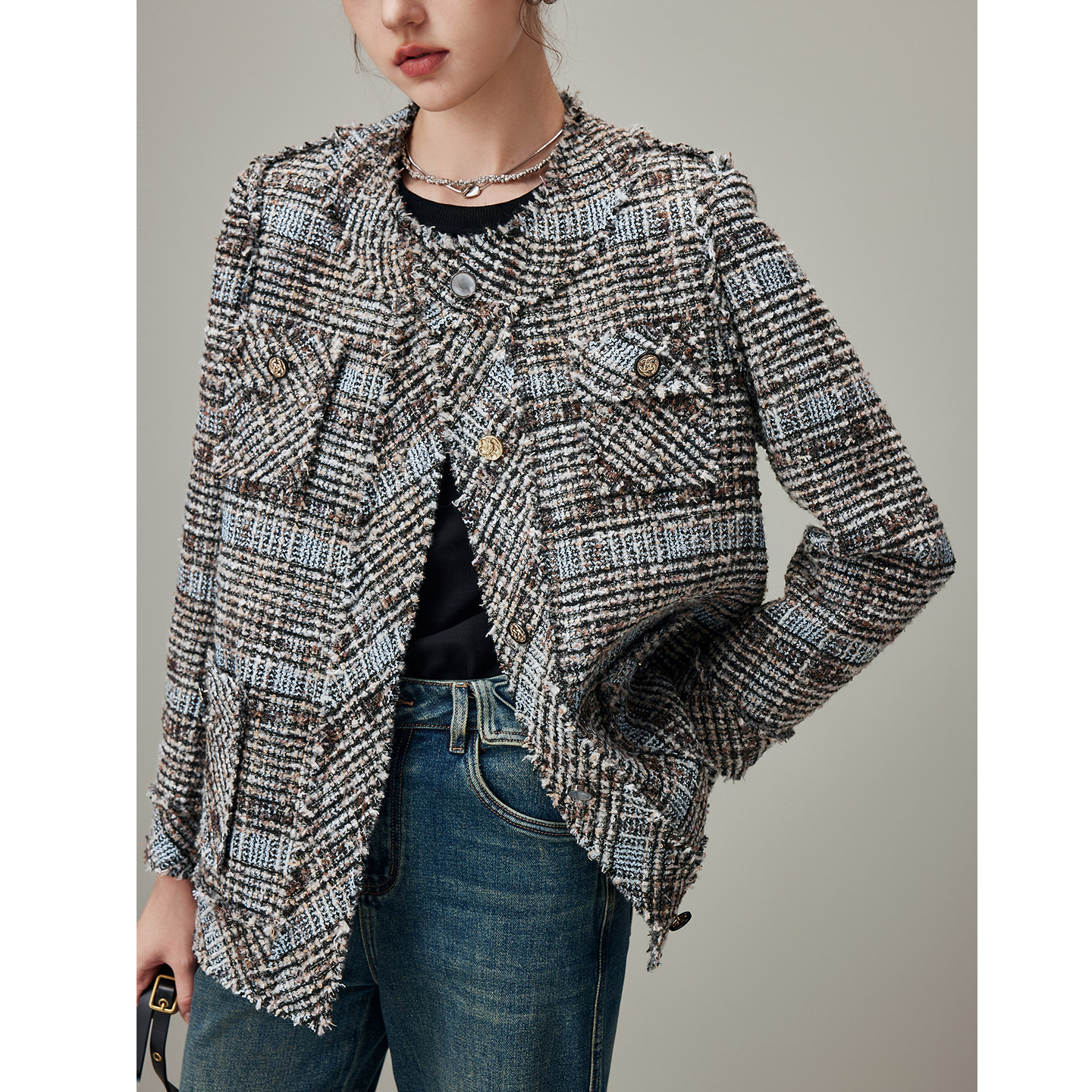 dfvc灰色小香風(fēng)格 外套女2025年冬季 新款 通勤休閑夾克上衣厚 紋短款由