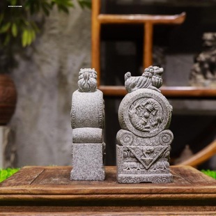 石獅子一對(duì)看門(mén)石頭雕刻小獅子擺件小號(hào)門(mén)口家用你微景觀中國(guó)風(fēng)由