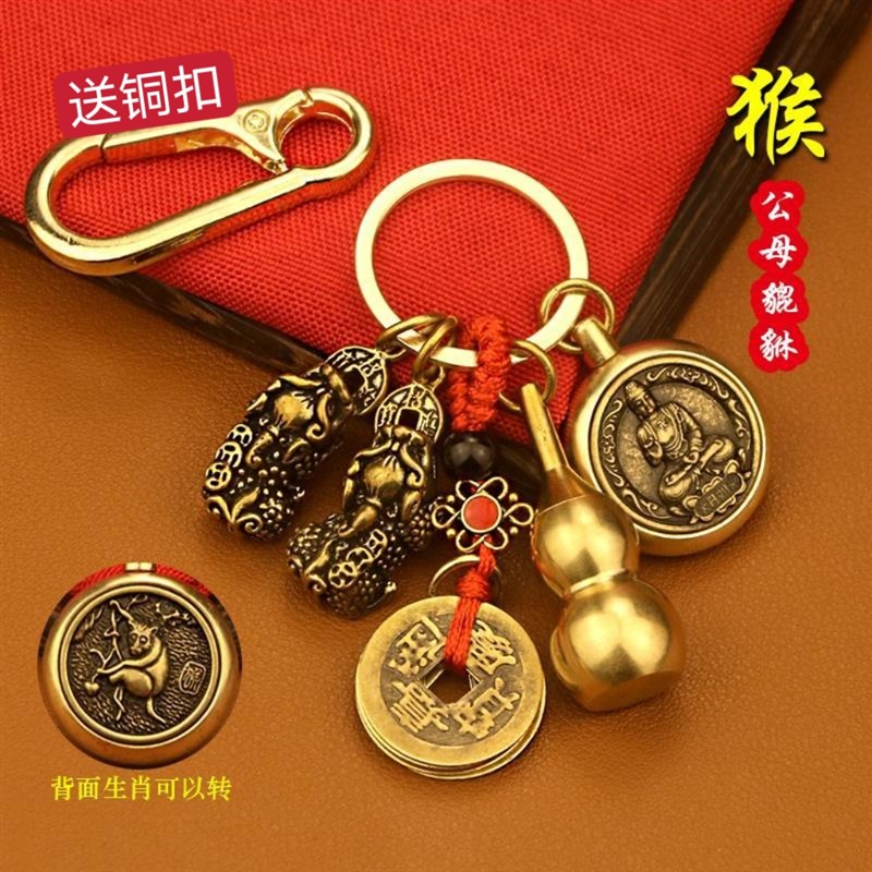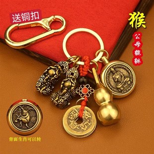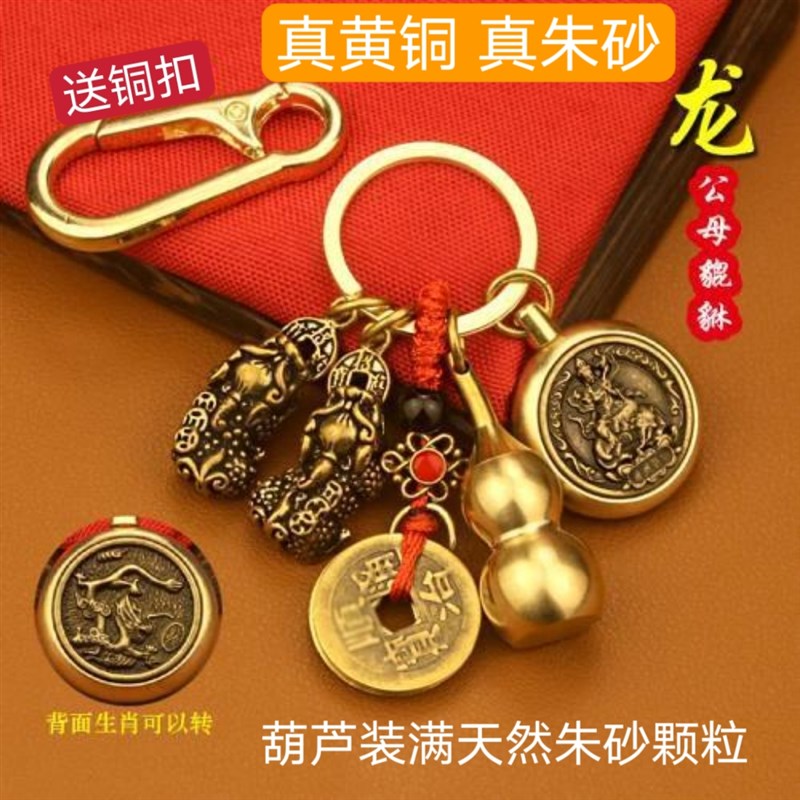 飾 極速黃銅葫蘆送真朱砂鑰匙扣本命佛十二生肖守護神鑰W匙扣掛式由