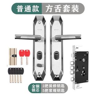 單舌木門鎖家用通用型臥室室內房間門執(zhí)手機械門鎖不銹鋼鎖具配件