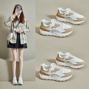 內增高女鞋 斷碼 透氣休閑百搭運動休閑鞋 女2025新款 特價 真皮老爹鞋