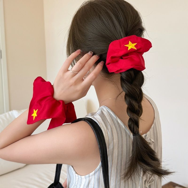 五角星紅色大腸圈高顏值扎發頭繩ins高彈力耐用馬尾氣質發繩 新款由