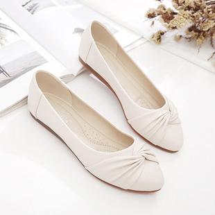 休閑鞋 真皮白色單鞋 子 巨好看軟底芭蕾淺口小皮鞋 新款 女款 2025秋季