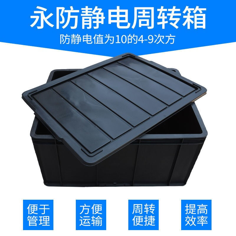 帶蓋子 防靜電周轉(zhuǎn)箱黑色塑料靜電膠框箱物料盒托盤帶蓋子8.號由