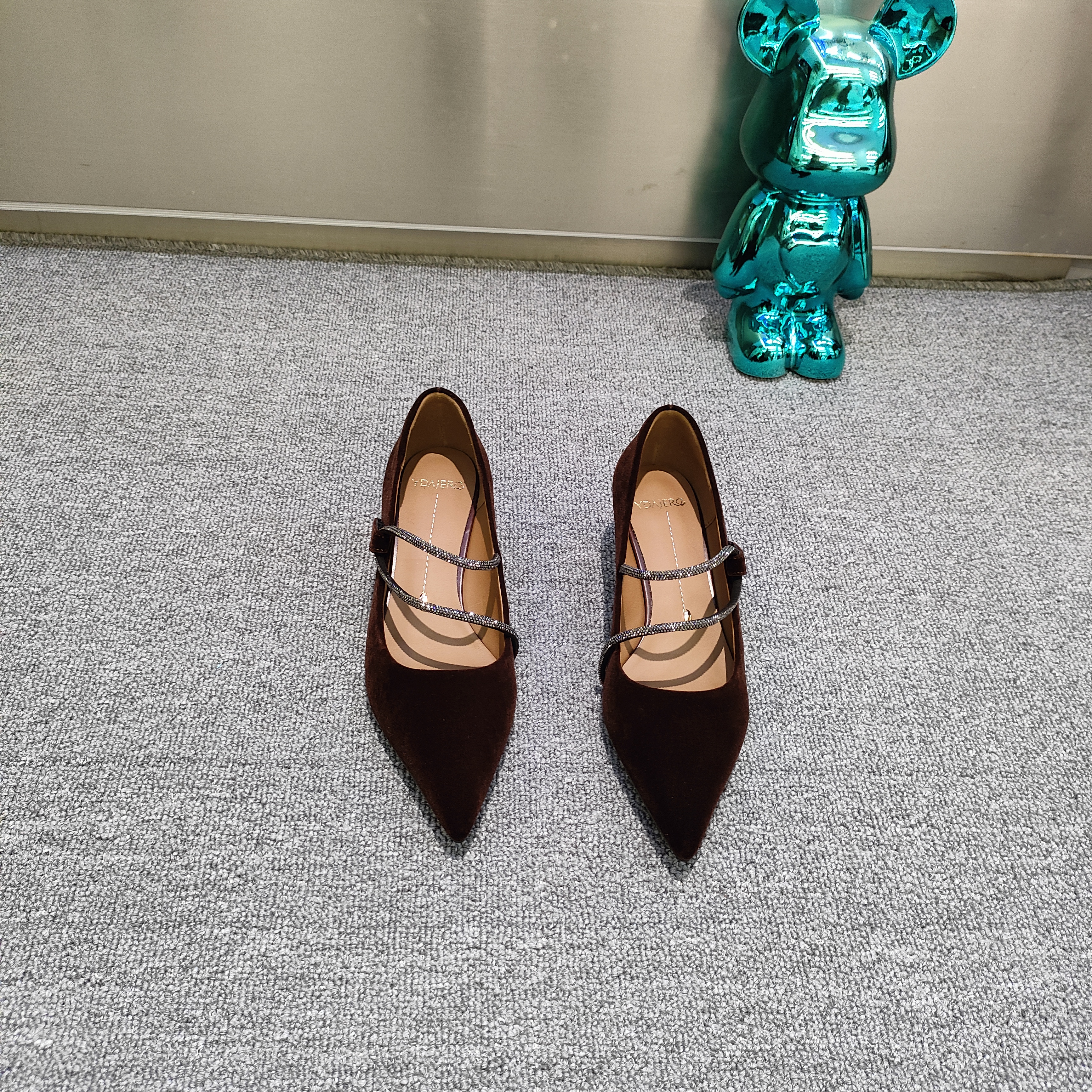 正裝 百搭 淺口尖頭羊皮鞋 女黑色小皮鞋 靜音系列 千百度通勤單鞋