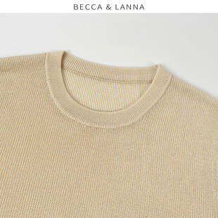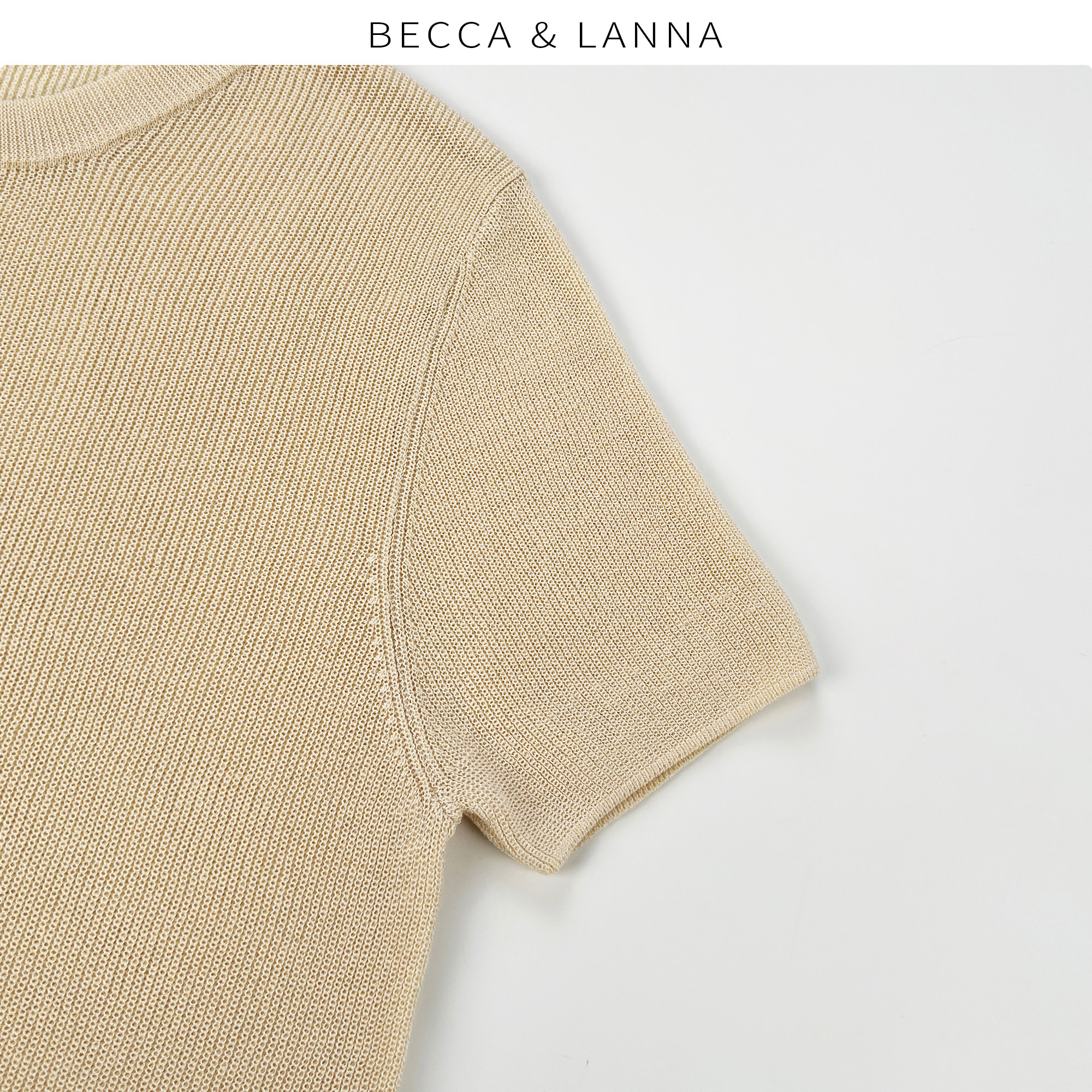 米色圓領針織短袖 女士早秋薄款 簡約溫柔風T恤上衣D0261 硬貨哥由
