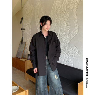 純棉寬松內搭日系高級痞帥長袖 襯衣 男秋季 ONEARTS克萊因藍色襯衫由