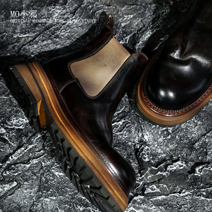 T301馬臀皮切爾西手工復(fù)古水洗馬皮厚底英倫風(fēng)短靴女靴 MO小邪由