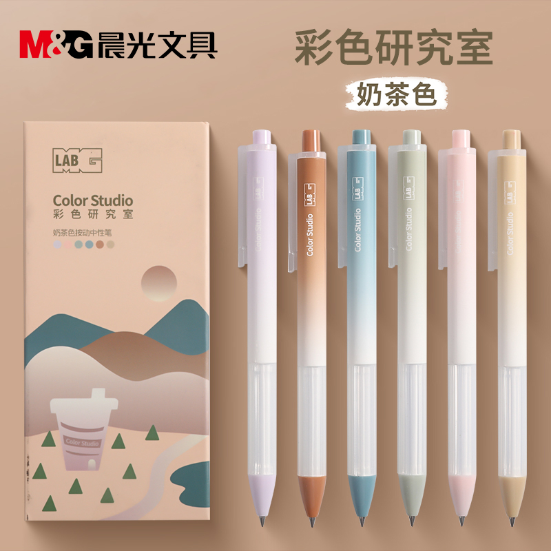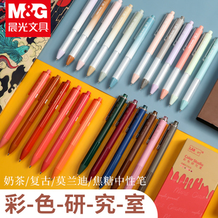 晨光文具彩色研究室速干優(yōu)品中性筆0.5mm高顏值按動(dòng)筆子彈頭黑色水筆碳素筆學(xué)生用考試刷題少女心順滑走珠筆由