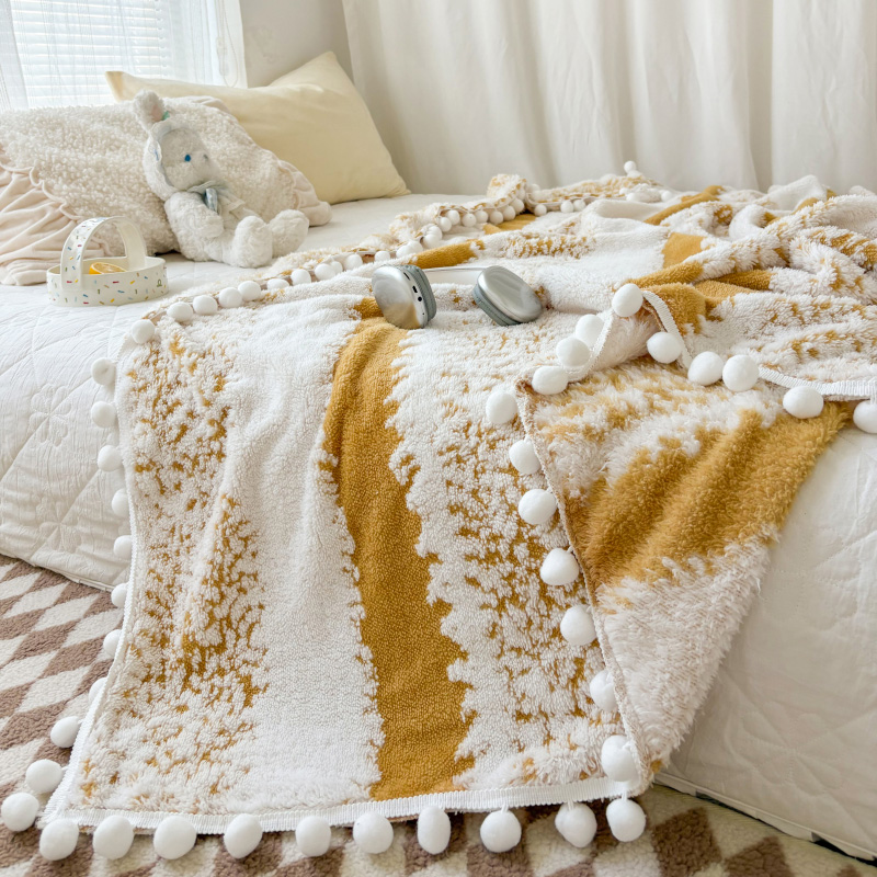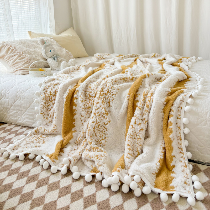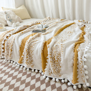 羊羔絨毯休閑毛毯學生宿舍珊瑚絨蓋毯 ins簡約提花兔毛絨加厚冬季