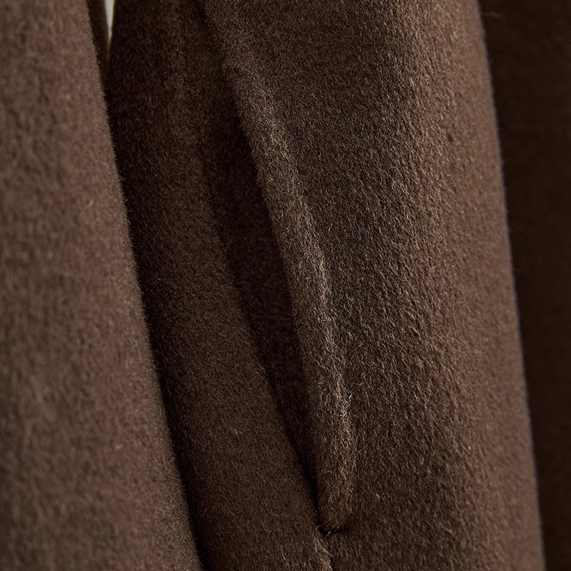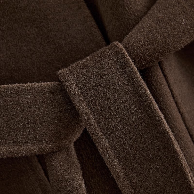 腰帶小個子高端毛呢外套 雙面羊絨大衣女PRATOLA咖啡色氣質短款由