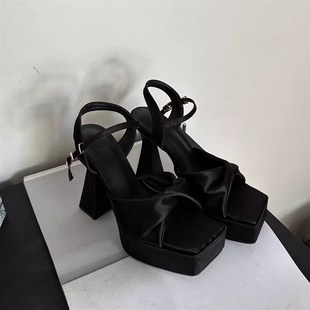 高跟鞋 新款 sw黑色一字帶細(xì)跟性感小眾仙女風(fēng)網(wǎng)紅涼鞋 女2025年夏季