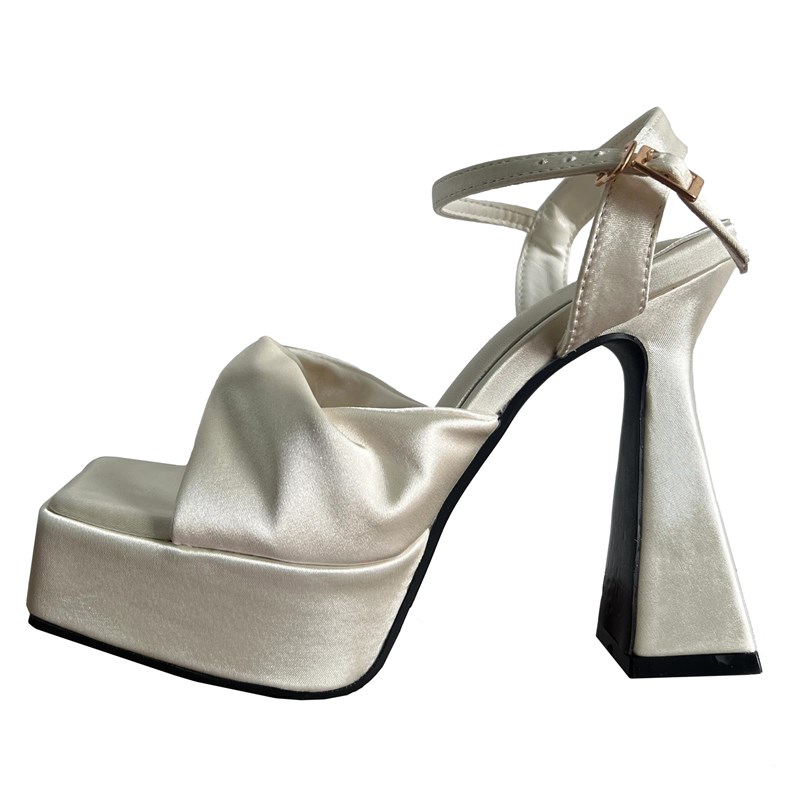 速發(fā)法式 高跟鞋 不累腳防水臺(tái)白色婚鞋 厚底粗跟一字扣帶涼 緞面新款由