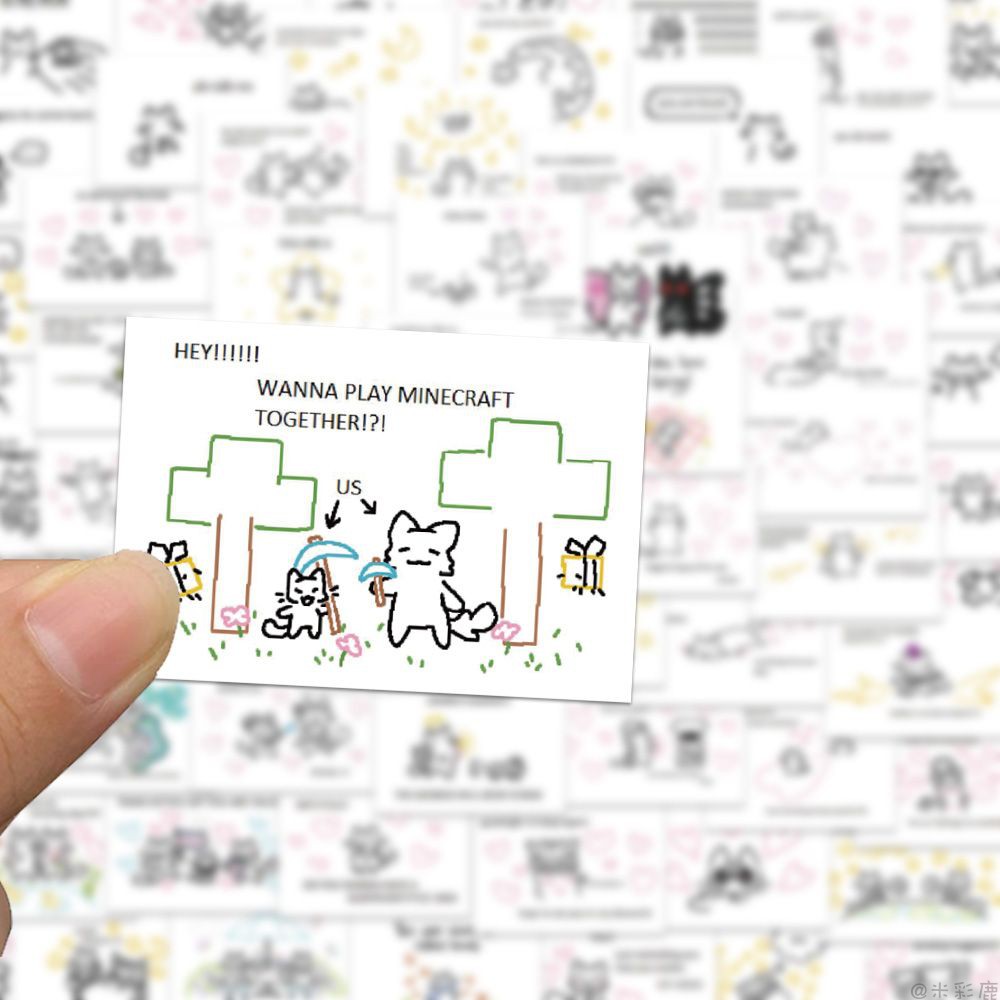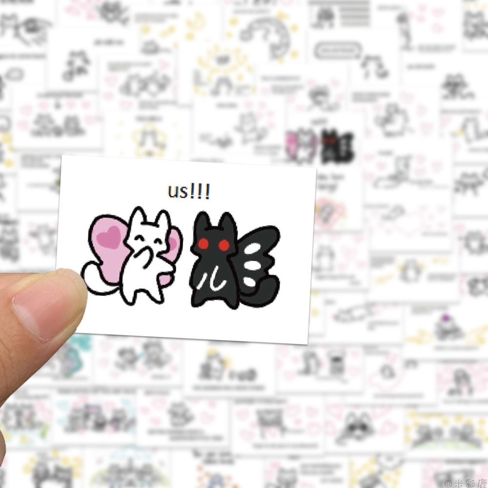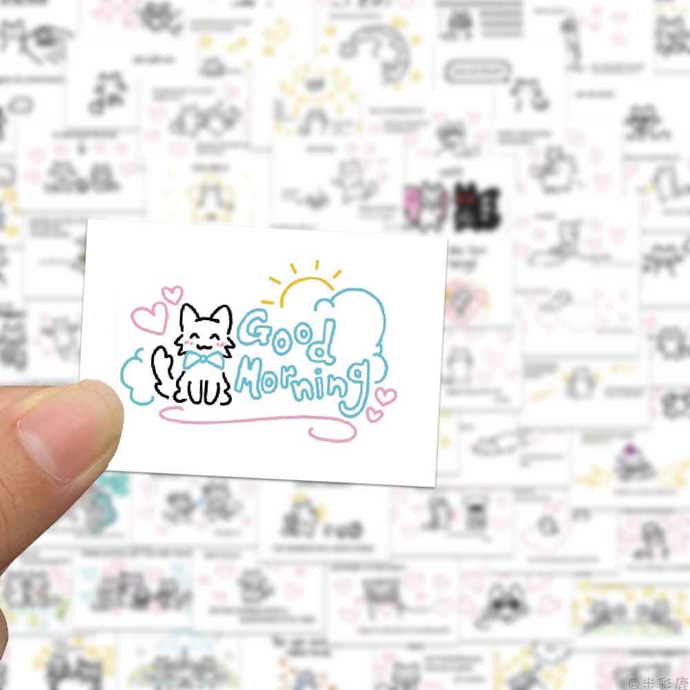 64張Kitten小貓簡筆畫貼紙ins風簡約手機殼筆記本裝 飾小貼畫手賬素材貼 飾防水貼紙平板電腦行李箱diy裝由