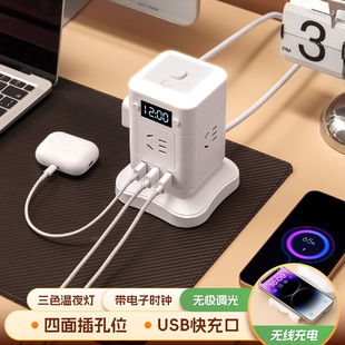 學生宿舍多孔usb插座插排插板辦公桌面家用接線板帶時鐘夜燈排插由