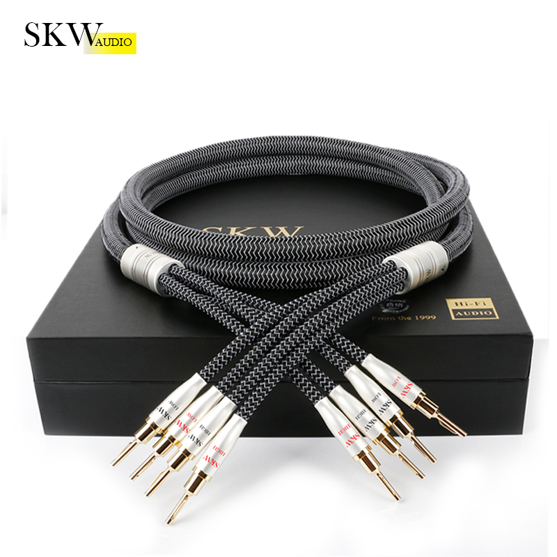 SKW高端發燒hifi單晶銅鍍銀四對四雙線分音喇叭線功放專業音箱線由