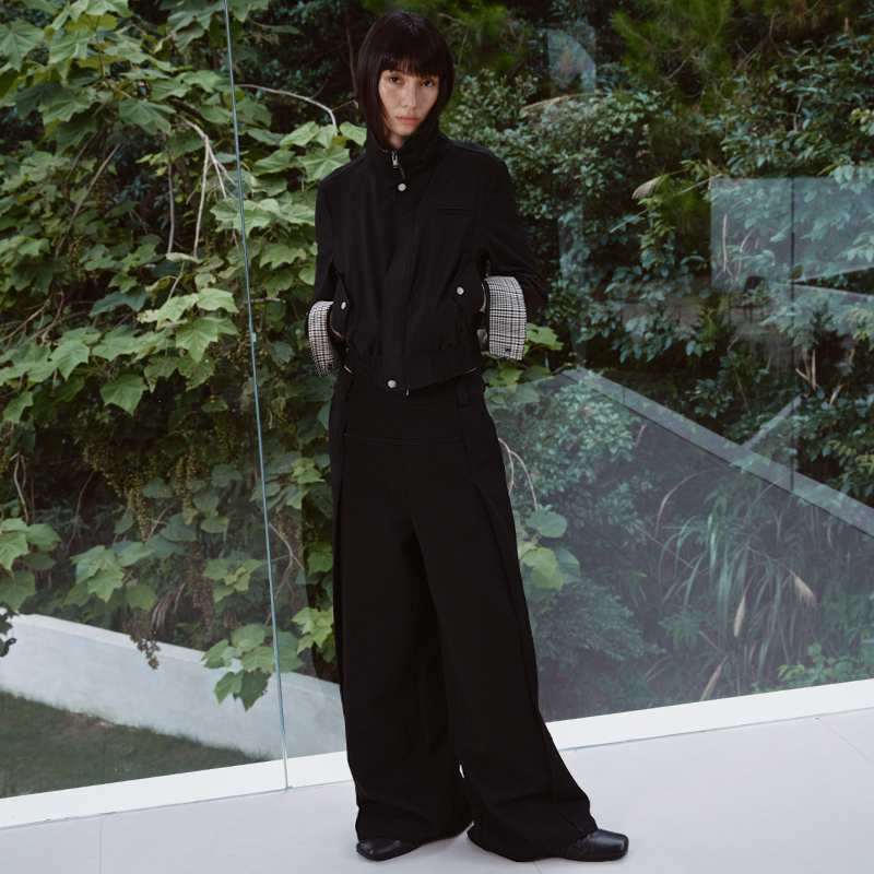 鉚釘裝 JCAESAR 飾 多穿著形式 短窄版 WOMEN 格紋拼接黑夾克由