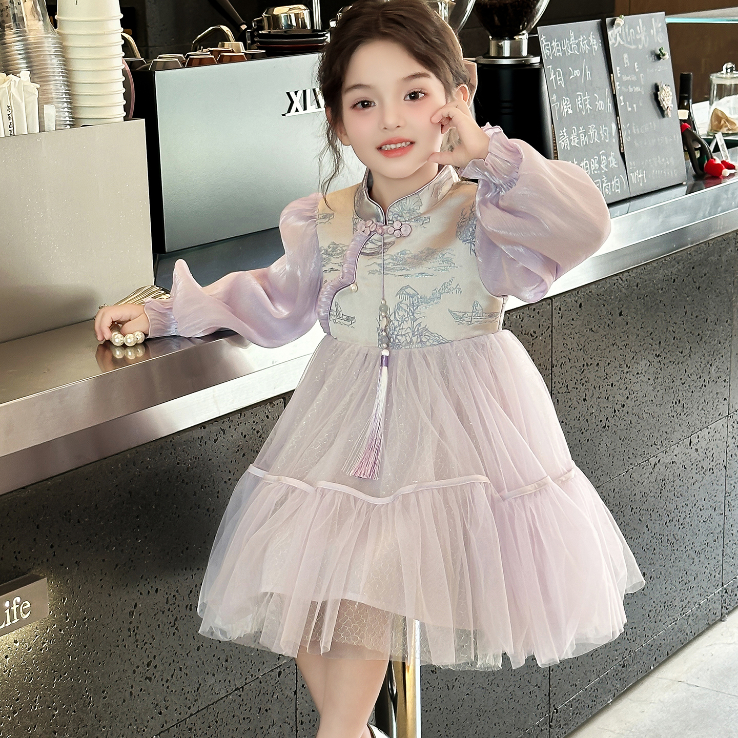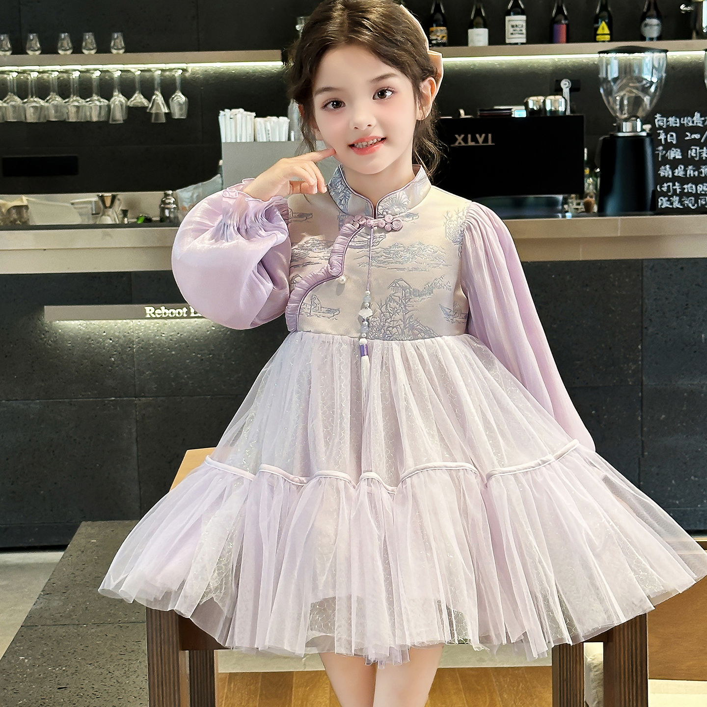 連衣裙兒童好看國(guó)風(fēng)中式 公主裙春秋女孩裙子 2025新款 女童漢服秋裝由