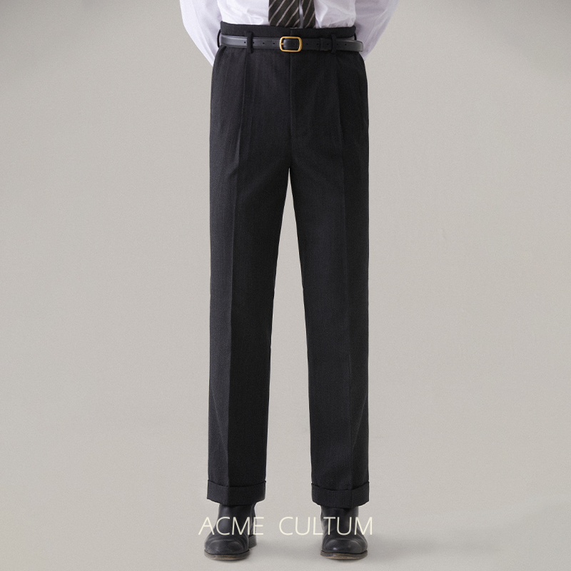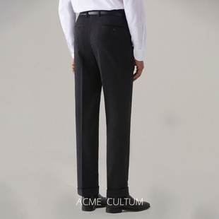 高級感純色正裝 AC全羊毛騎兵呢斜紋好萊塢式 高腰雙褶西褲 男士 長褲由