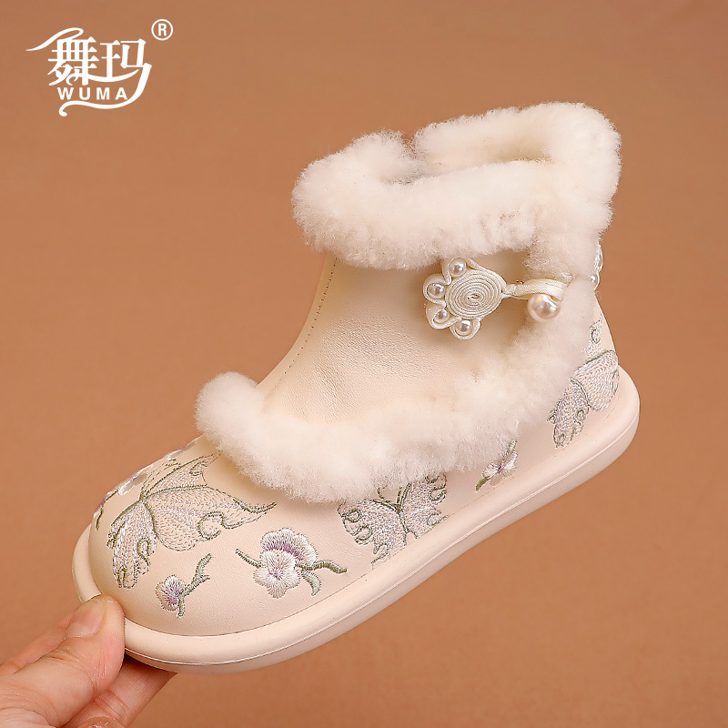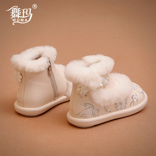 秋冬款 女孩加絨兒童馬丁靴漢服靴 子中國風(fēng)短靴2025新款 舞瑪女童鞋由