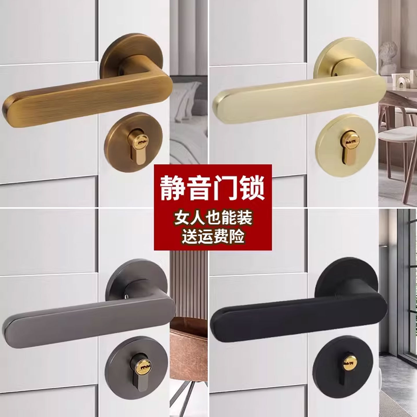 分體鎖套裝 黃古門把手磁吸鎖 現(xiàn)代簡約房門鎖家用通用型衛(wèi)浴鎖歐式由