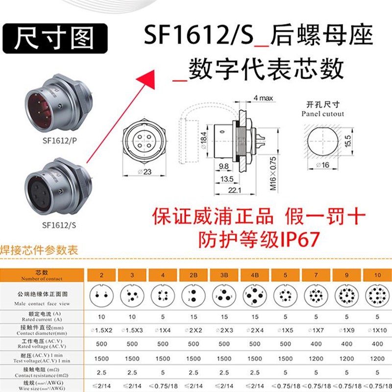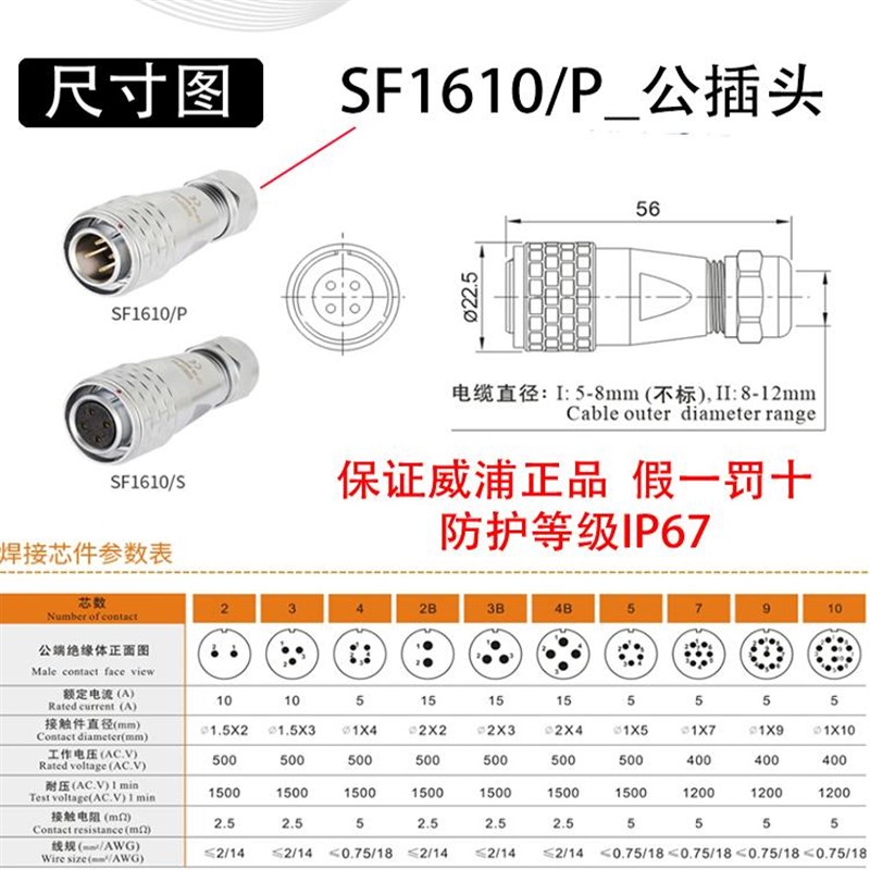 SF1610 P_II大尾部插頭WEIPU 234567910芯 威浦防水航空插頭SF16由