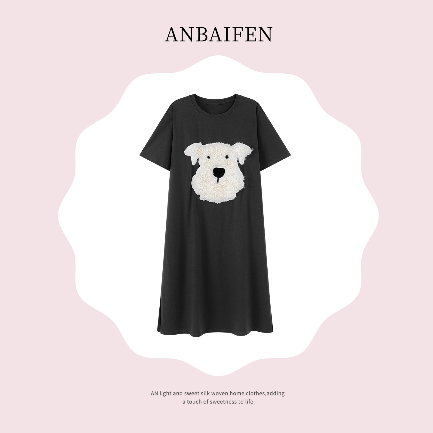 莫代爾冰絲寬松減齡少女風(fēng)可外穿睡衣家居服 可愛狗狗睡裙女夏短袖由