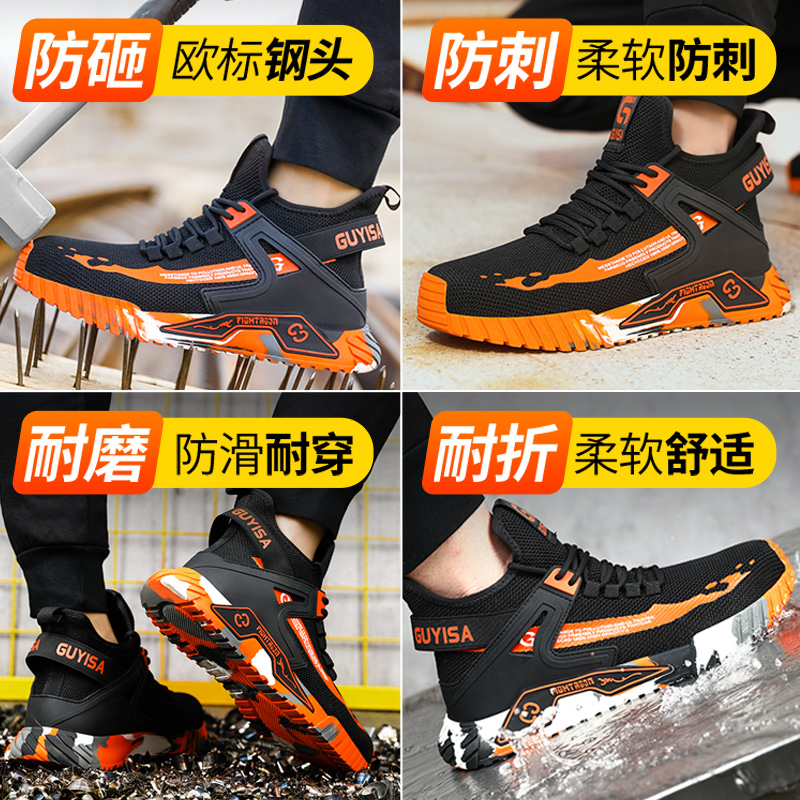 高幫勞保鞋 鞋 防砸防刺穿2025新款 安全輕便鋼頭帶鋼板工作工地 男款由
