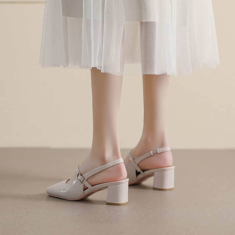 高跟鞋 方頭細跟黑色漆皮性感外穿包頭后空走秀時裝 涼鞋 女 2025新款