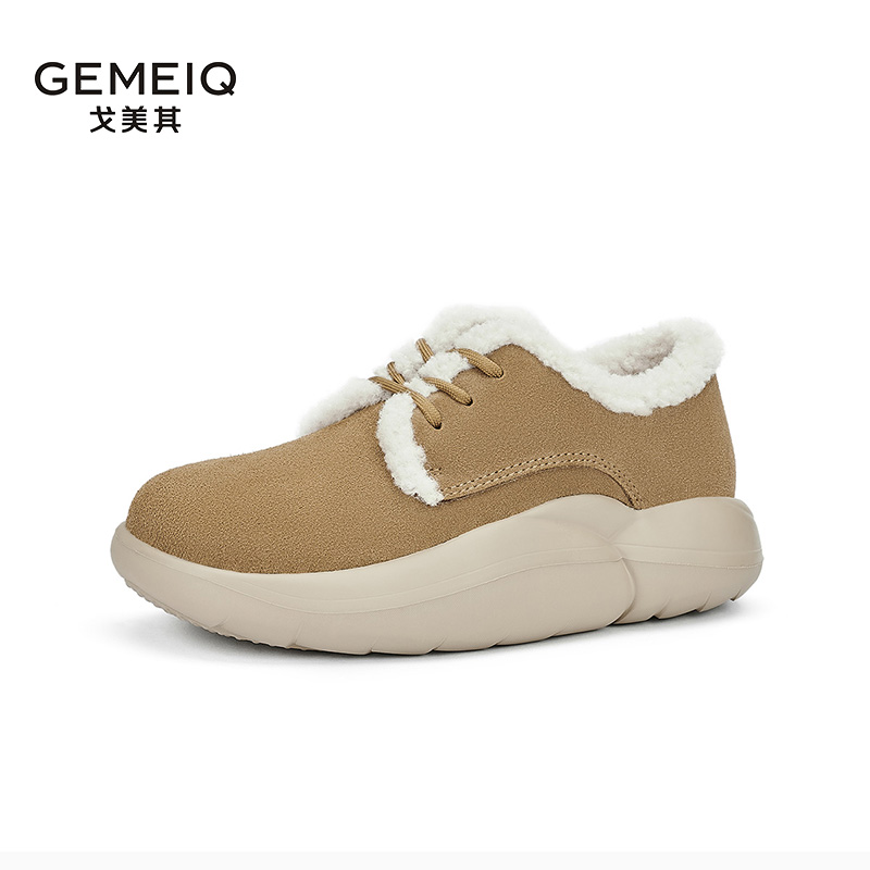 厚底松糕鞋 戈美其真皮毛毛鞋 一腳蹬棉鞋 加絨女鞋 女冬2024新款 冬季由